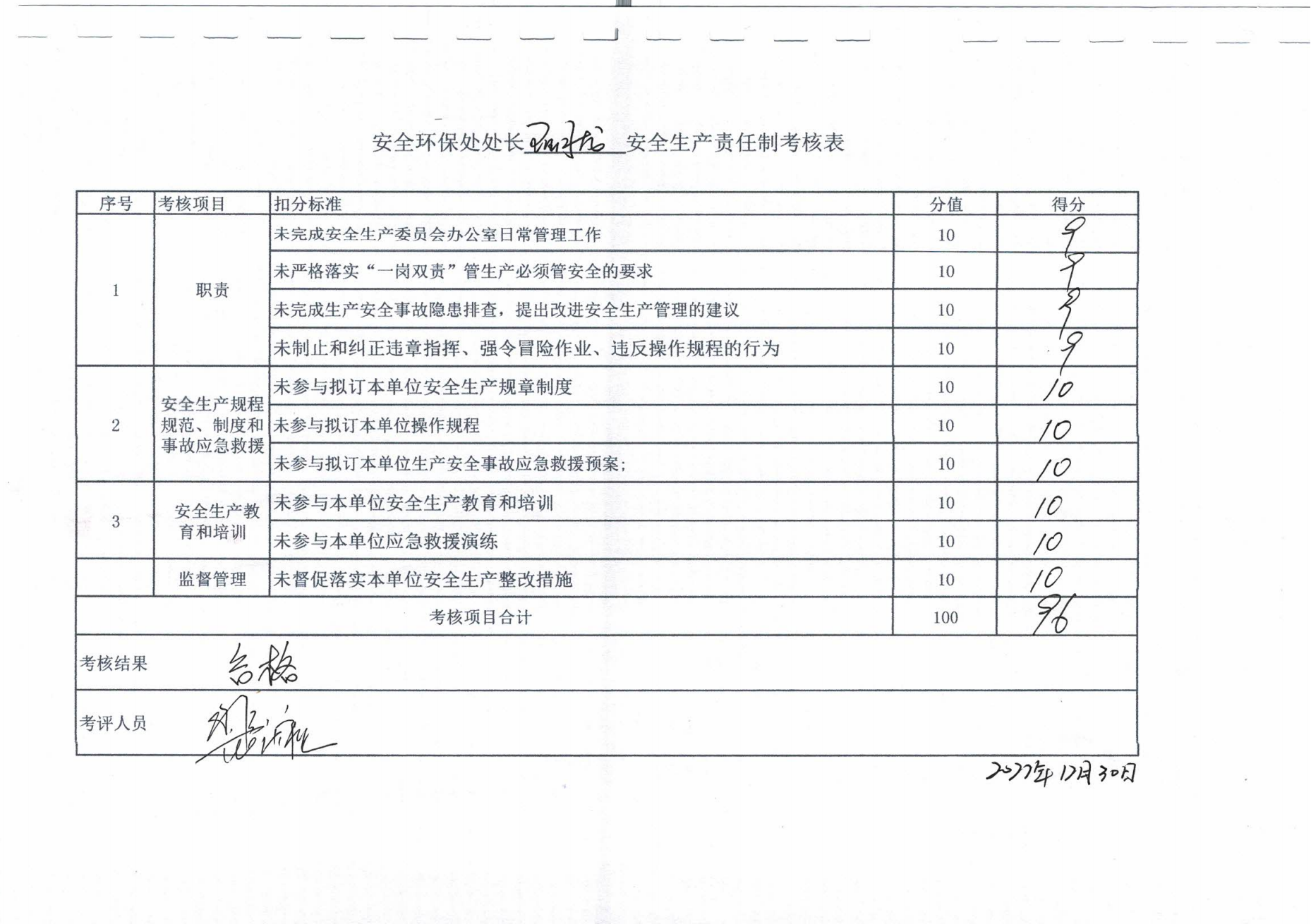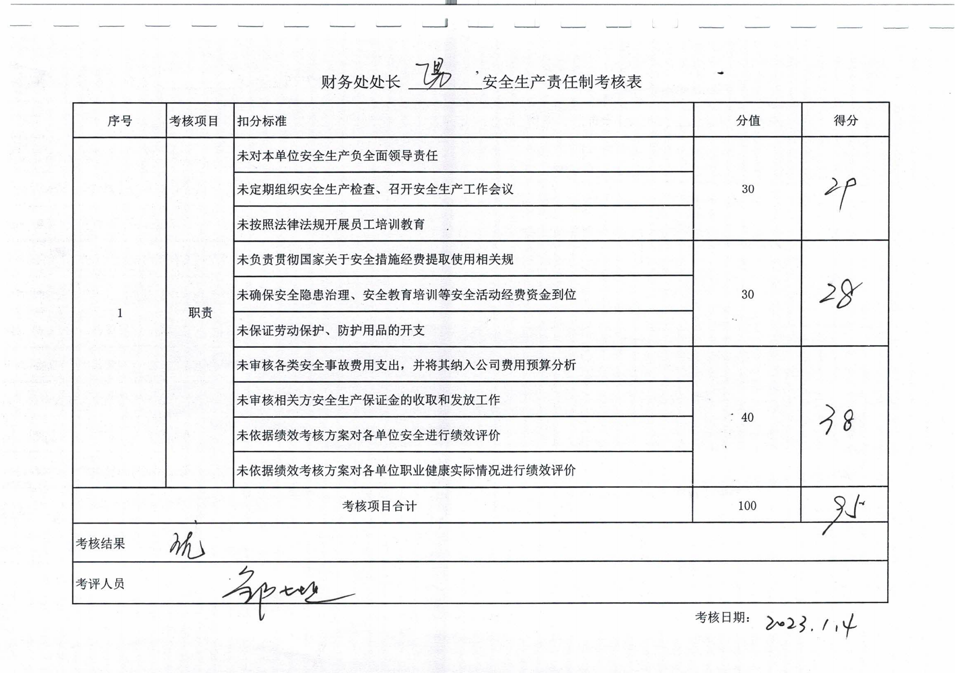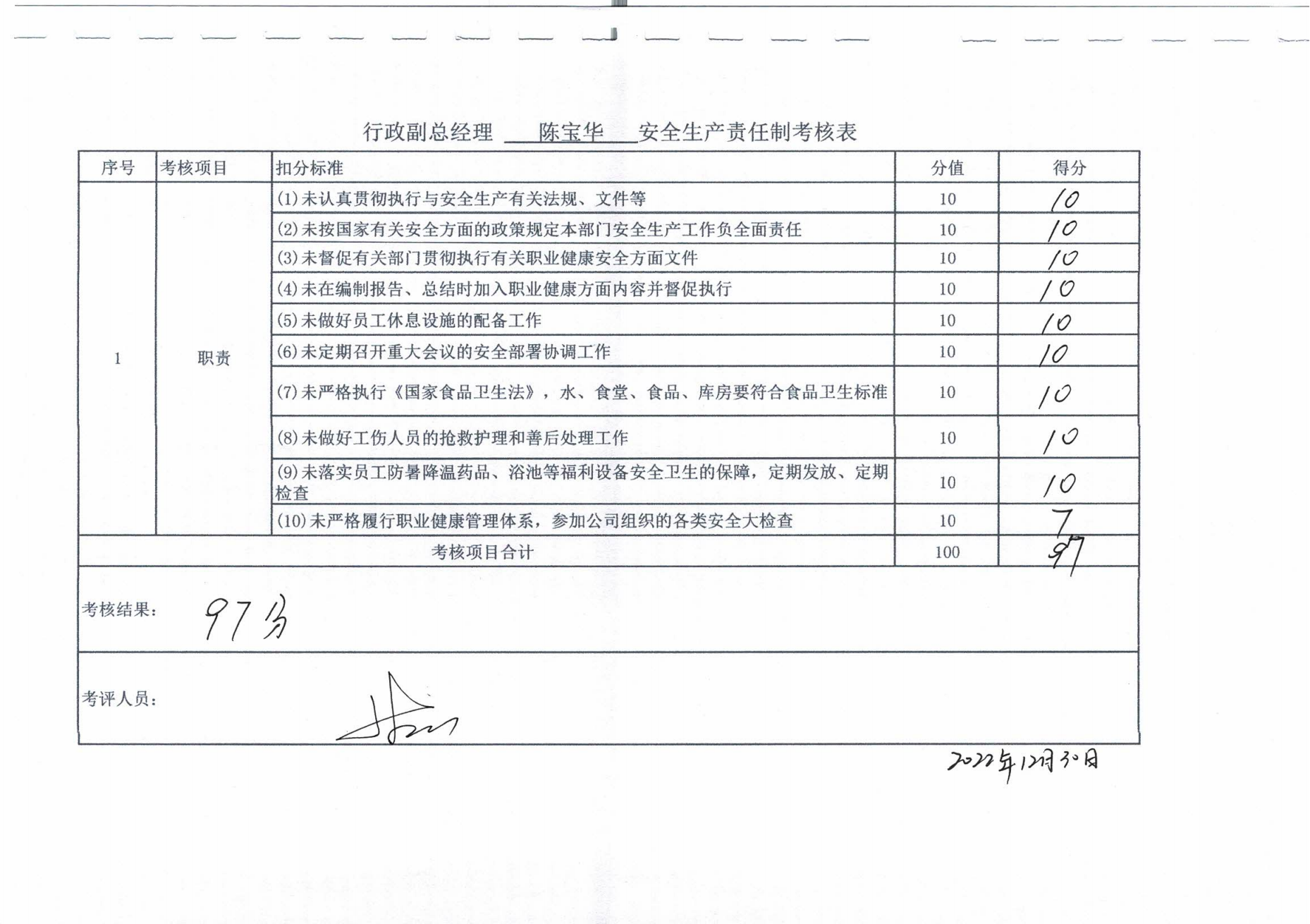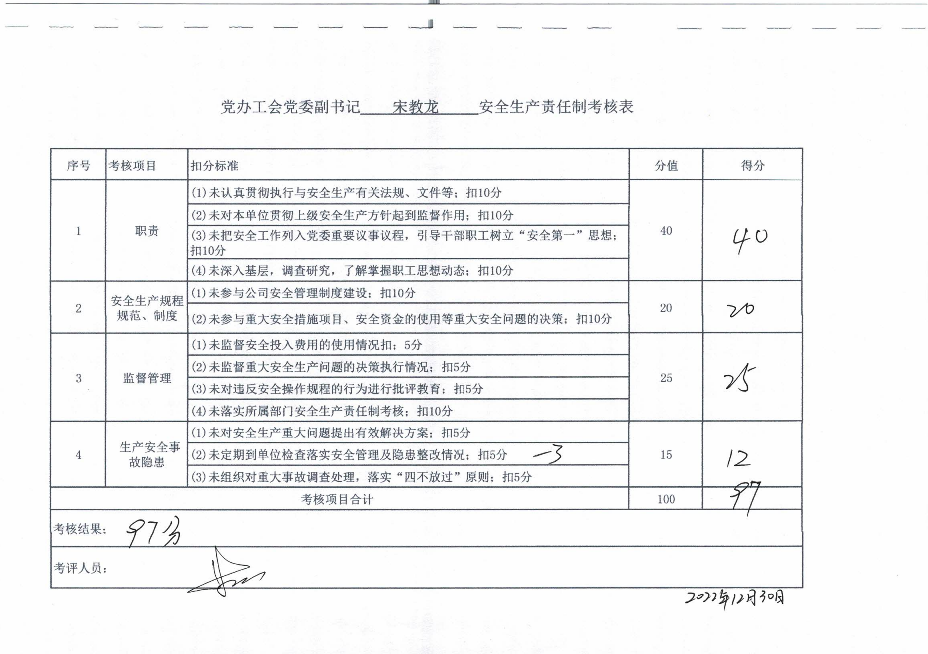 2022年主要负责人安全生产责任制考核公示