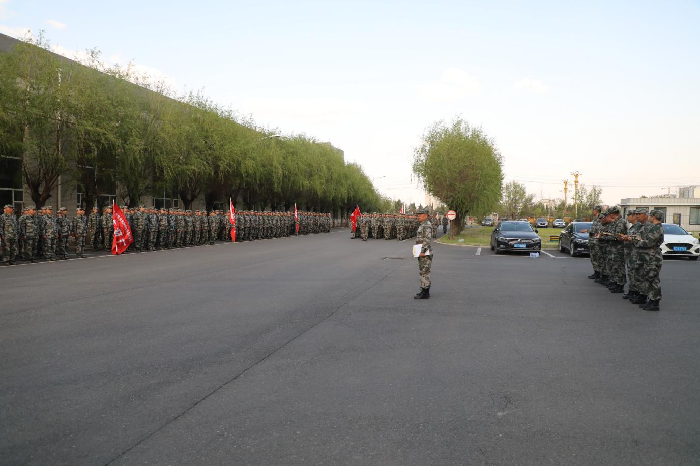 风轻云淡,傍花随柳。5月7日英国正版365全员军训在盎然春意中拉开帷幕。千余名员工在以大地为训练场,与春风同行,与绿柳共舞,在严格的军事化训练中锤炼意志,在自然的怀抱中凝聚合力。